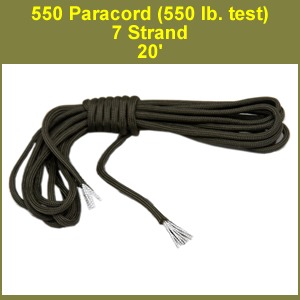 20 ft. 550 lb. Test Parachute Cord (paracord): 7 strand: