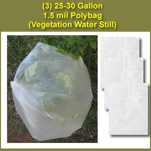 - Clear, high density poly bags used to collect water as a vegetation still.