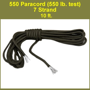10 ft. 550 lb. Test Parachute Cord (paracord): 7 strand: