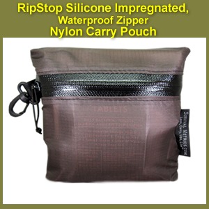 - The individual tablet pouches are stored inside a re-sealable (subdued in color) storage pouch that can be packed away anywhere.